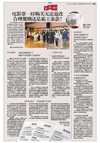 买了的电影票无法去到影院观看该如何处理?能否像飞机火车票一样退换?在火爆的春节档,不少市民会提前几天甚至几周来选座购票,只为能在最合适的时间享受更好的观影体验,但难免会因为各种情况影响计划。日前,市民郭女士向记者反映了她提前购买的电影票需要退改的情况,而电影院方面则表示一经购买“无法退换”。问题来了,电影票一经购买却无法退改,这样的规定到底是不是“霸王条款”?