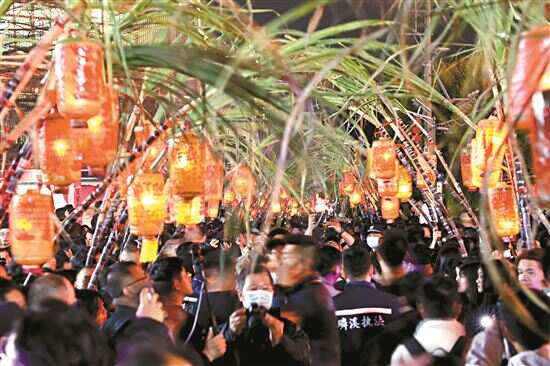 震耳欲聋的鞭炮声、锣鼓声中,村民撑着挂上红灯笼的甘蔗守在村道旁,盛装打扮的巡游队伍从“蔗巷”中穿行而过……正月十六,潮州市湘桥区磷溪镇溪口片各村上演了一出“闹热”的“穿蔗巷”民俗大戏。