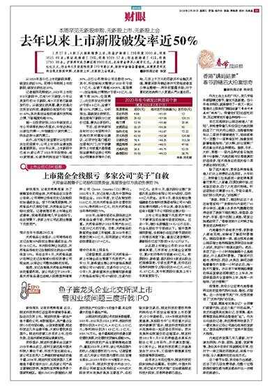 记者据同花顺统计,2023年上市的313只新股中,已有147只破发,今年以来发行的20只新股,有4只目前已跌破发行价。从破发比例来看,最大的是北交所安达科技,最新股价较发行价下跌61.69%;其次是创业板的绿通科技和格力博,下跌幅度均超55%。