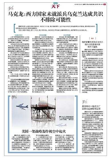 据新华社电 法国总统埃马纽埃尔·马克龙26日说,西方国家领导人当天讨论向乌克兰派地面部队的可能性,现阶段没有共识,但同意加快向乌克兰提供武器弹药。