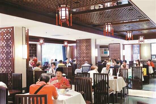 ■一楼的白云轩中餐厅几十年如一日座无虚席,附近的新老街坊习惯了来这里打卡他们的“一盅两件”。