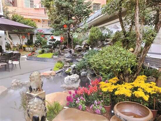 在古塘村的一户户“美丽庭院”中,陈满灵家的庭院“满园”最为特别,这里绿树葱郁,亭台楼阁,流水假山,如同一座中式园林。陈满灵是从事园林绿化行业的民营企业老板,也是园林设计师,“我本身就是干这行的,对园林很感兴趣,把自家庭院建好,自己住得也舒服。”