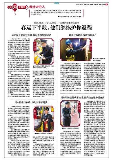 广州这个春节“火了”!据统计,春节假期广州市共接待市民游客超过1555万人次,同比增长超58%(其中外地游客近625万人次,同比成倍增长)。优质的公交服务是保障市民游客欢乐祥和过新年的应有之义,广州市交通运输局服务监督科副科长周翌跟往年一样忙碌起来,她的任务十分明确:做好公交服务监管。