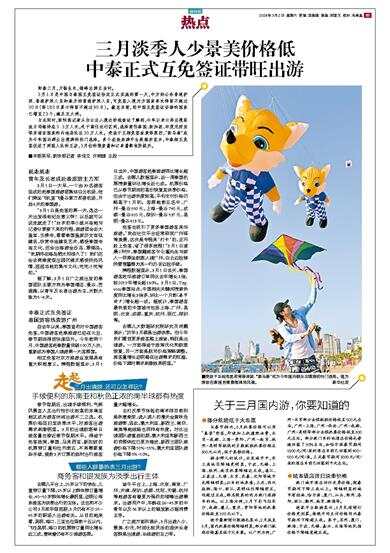 据了解,3月1日广之旅出发的泰国团队主要方向为泰国清迈、曼谷、芭提雅,以青年及长者出游为主,天数大致为5-6天。