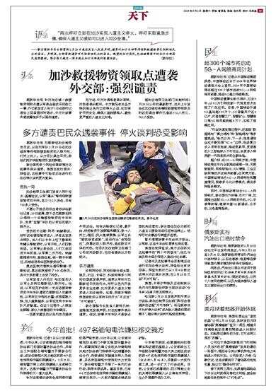 “再次呼吁立即在加沙实现人道主义停火。呼吁采取紧急步骤,确保人道主义援助可以进入加沙全境。”