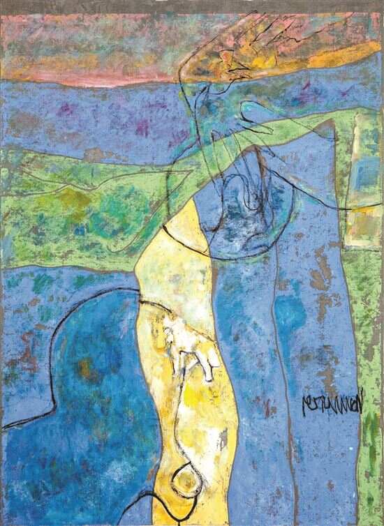 尚扬,四川人,生于湖北。1965年毕业于湖北艺术学院,1981年油画硕士研究生毕业。曾任湖北美术学院教授、副院长,中国美术家协会理事、华南师范大学美术研究所所长。有学者认为,尚扬是利用综合材料进行抽象艺术创作的天才。他的抽象,是一种综合抽象,即有形的抽象,色的抽象,也有材料的抽象,笔墨的抽象。尚扬绘画的主题是自然,对自然研究得最精深的是中国山水画。尚扬形的抽象,即从解构中国山水画开始,他的《山水画入门》系列、《江山胜迹图》系列、《看书》系列,都可以看作他解构中国山水画的学术笔记,解构的终极结果是高度纯化的锥形,回到儿童对山的认知。