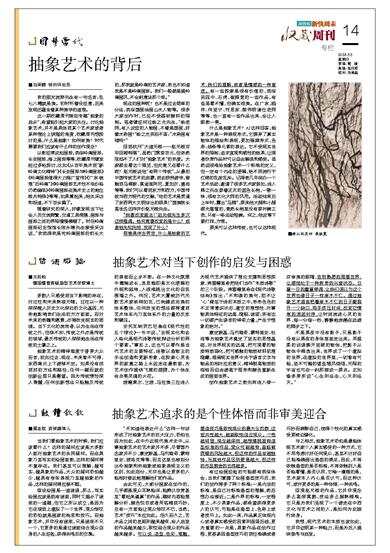 创作抽象艺术之前先向诗人借一双审美的眼睛,告别熟悉的周围世界,让感觉处于一种新奇的兴奋状态。日复一日的重复单调,让我们误以为这个世界也像日子一样麻木不仁。通过抽象艺术语言把着麻木不仁的日子撕裂开一个缺口,用手挤压时间,改变它惯常的流逝时序,让时间流进心灵的世界,每一分每一秒,静静地流趟在远游的脚步之下。