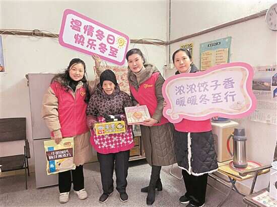 “阿婆,过节啦,给您送点好吃的,还有新衣服也到了,我们给您换上吧!”“好好好,多谢你呀!”