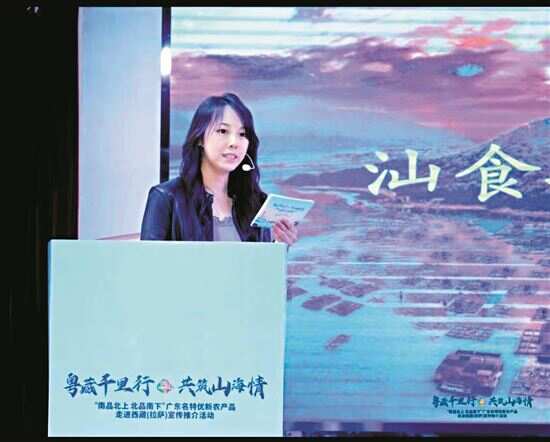 ■潘育玫(左一)宣传推介汕头特色农产品。