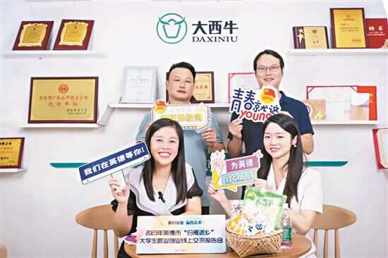 ■张小玲(前左)在英德市“归雁返乡”大学生线上交流活动现场。