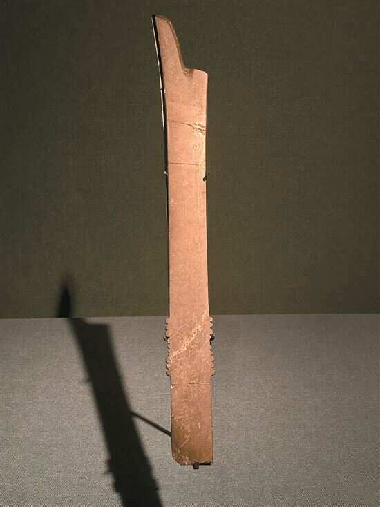 玉璋。商代,1986年四川省广汉市三星堆遗址二号祭祀坑出土,四川广汉三星堆博物馆藏。