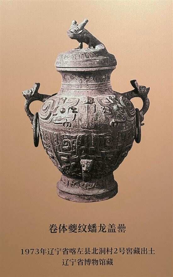 卷体夔纹蟠龙盖罍,1973年辽宁省喀左县北洞村2号窖藏出土,辽宁省博物馆藏。