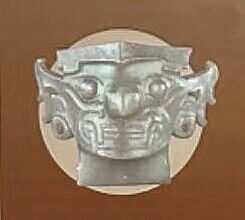 三星堆遗址出土数量庞大的各类器物,揭开了古蜀文明神秘面纱。其中最引人注目的就是众多青铜造像。面具是青铜造像中一大类,二号祭祀坑出土了20件人面具。它们总体形象是方脸、宽额,宽横眉,杏叶形眼,鼻翼丰肥,耳垂下多有圆孔。有些面具在脸型、耳朵长短、鼻梁高矮上有所区别。比如这件铜人面具(商代,公元前1600年-前1046年)耳朵较短,鼻梁短直,嘴巴宽阔而嘴角上扬,露出神秘微笑。三星堆遗址出土的人面具对研究古蜀人的面貌特征、身份职能和宗教习俗提供了重要物证。