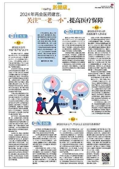 今年全国两会,就业、乡村振兴、医疗、高质量发展、养老、教育强国等成为最受关注的话题。而在医疗领域,免费医疗、生育、养老、医保、药品、罕见病等热词频繁出现。其中,全国人大代表、政协委员提出了若干项医疗医保养老等方面的真知灼见,对生育和养老这“一老一少”,以及对医保的门诊报销起付线、个账支付范围、医保目录的诊疗项目等极为关注,其中还有不少特别抢眼的亮点。