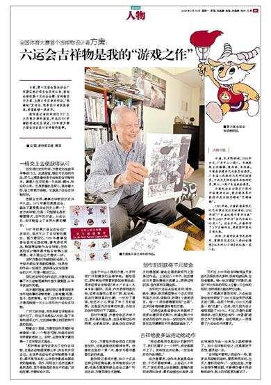 “那时候有宣传说我为了创作吉祥物,总是去动物园观察山羊,其实我并没去过。全世界运动会的吉祥物都是卡通的,都不是写实的,山羊的形象其实都在我的脑海里。另外,阳阳这个名字还真不是我选的,至于是谁选的我也不知道。”说起往事,方唐哈哈大笑。