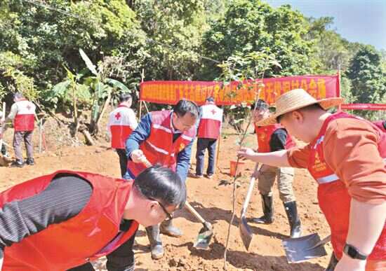 ■3月12日,广东省红十字会党组书记、常务副会长史先东,党组成员、副会长李何荣带领省会机关及直属单位全体党员干部、职工,在活道镇无忧洞村种下黄花风铃、四季桂等观叶观花果树树种约1200株。