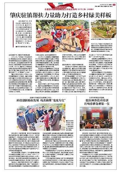 2024年1月,驻高要区大湾镇帮镇扶村工作队积极协调肇庆市金融工作等组团单位资源,联合6家金融机构,为大湾镇古西村种植宫粉紫荆树215棵。驻怀集县马宁镇帮镇扶村工作队积极协调,组织私营企业认捐认种4厘米树木99株。