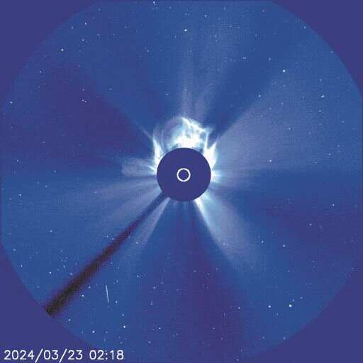 ■SOHO卫星携带的日冕仪拍摄到日冕物质抛射过程。