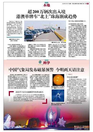 新快报讯 据央视新闻消息,记者从中国气象局了解到,3月24日、25日和26日三天可能出现地磁活动,其中3月25日可能发生中等以上地磁暴甚至大地磁暴,预计地磁活动将持续到26日。在此影响之下,空间站可能因大气拖拽造成轨道高度下降,卫星导航设备的定位误差增大,航空飞行将面临通信环境变差和跨极区辐射的双重风险,对于公众,尤其是信鸽玩家和极光爱好者,未来几天要时刻注意空间天气信息。