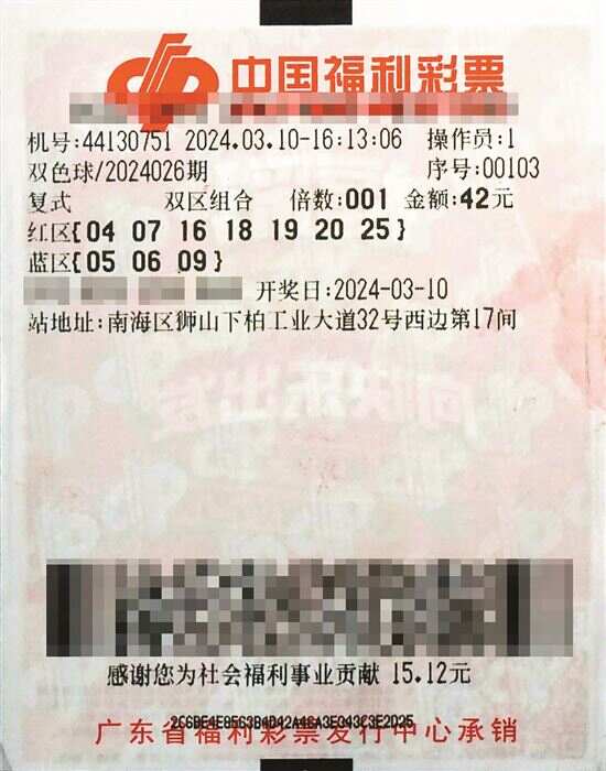 近日,佛山彩市捷报频传,喜讯连连。双色球第24026期中出671万多元大奖的前一期,第24025期开奖中,佛山44131497销售站点一张10元机选单式票也中出791万多元大奖。