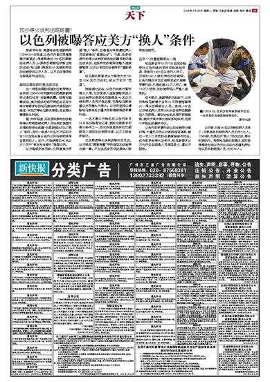 据新华社电 美国有线电视新闻网(CNN)24日报道,以色列方面已同意美国方面提议,考虑释放约700名巴勒斯坦在押人员,以换取巴勒斯坦伊斯兰抵抗运动(哈马斯)释放约40名被扣押在加沙地带的以方人员。以方正在等待哈马斯高层作出回应。