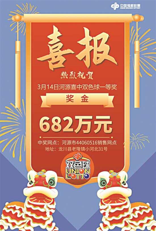 新快报讯 记者陆妍思 通讯员赖小龙报道 双色球第24028期开奖中,全国共开出12注一等奖,其中1注花落广东河源,幸运彩民刘先生(化名)揽获奖金682万余元,迎来河源福彩龙年首个双色球大奖。
