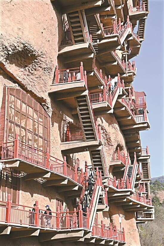■游客在位于天水市麦积区的麦积山石窟游览。 新华社发