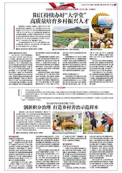 2024年中央一号文件明确提出“壮大乡村人才队伍”,加大乡村本土人才培养。新快报记者从阳江市农业农村局获悉,这次培训特地邀请了来自浙江、广东、广西相关院校,在农业农村领域具有很深造诣的专家教授以及资深律师进行授课。本着“缺什么、补什么”和学以致用的原则,专家们围绕“‘千万工程’背景下科技赋能乡村振兴”“绿美广东工作指导和阳江林下经济发展模式及生态产品价值实现”“新型农村集体经济发展的实践探索及前景展望”“县域EOD模式协同百千万工程”“乡村治理与农民权益中的法律适用重点问题探讨”等内容进行专题授课,同时还到闸坡镇的典型村现场调研,现场还设有普惠金融宣讲点。