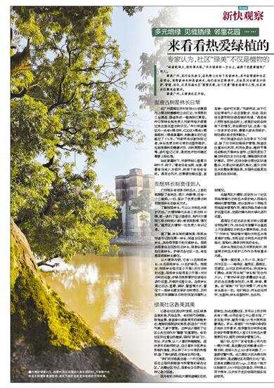 绿美广州,实行全民参与,在机制上任命了各级林长,其中在街道和社区居委会,有街级林长和居级林长,他们在社区绿美中,无论是对古树名木保护、管理、活化,还是实施社区“推窗见绿,出门见景”微改造绿化工程,社区林长们都走在前列。