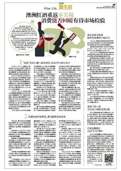 他告诉新快报记者,这几年澳大利亚葡萄酒在华市场份额逐渐被其他国家和国产葡萄酒取代,但其市场需求一直都在,他也一直在关注政策的变化,目前正联系进口事宜。