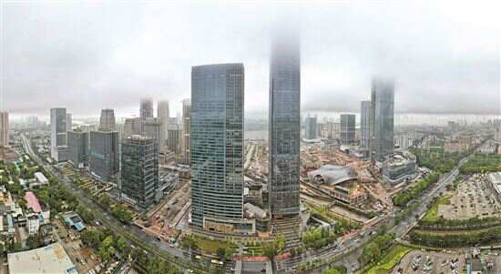 ■清明假期,广州市持续降雨,城区云层很低,很多高层建筑物隐没在云层中。 新快报记者 毕志毅/摄