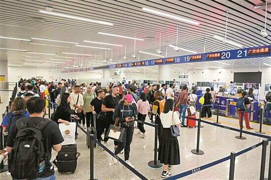 新快报讯 记者王敌报道 在广州白云机场口岸,入境航班接连抵达,口岸大厅熙熙攘攘,经由广州连接全球的“空中丝路”正逐渐恢复热络。4月8日,新快报记者从白云出入境边防检查站获悉,第135届中国进出口商品交易会(广交会)开幕在即,广州白云机场口岸入境外国人增多。