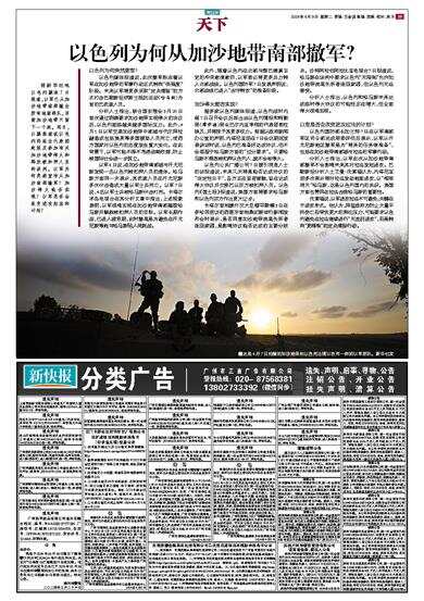 以色列国防部长加兰特7日在以军南部军区司令部完成局势评估后表示,以军从汗尤尼斯地区撤军是为“将来的任务做准备”,包括在加沙地带南部城市拉法的军事行动。