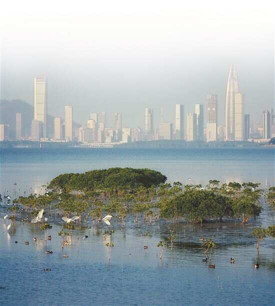 ■广东目前共有红树林地面积1.1万公顷,是我国红树林分布面积最大的省份,2024年计划营造2600公顷,比2023年营造面积增加一倍,另外修复1200公顷。这是深圳福田红树林国际重要湿地。通讯员供图