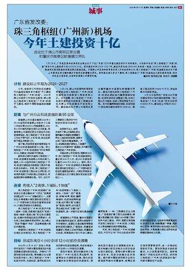 今年,省政府工作报告在完善现代化基础设施体系中提到“开工建设珠三角枢纽(广州新)机场”。2024年佛山市政府工作报告也提到,佛山将全力推进珠三角枢纽(广州新)机场开工建设,做好外围配套基础设施建设。