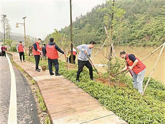 新快报讯 记者农艳芳报道 清明雨后,广州市荔湾区派驻梅州市梅县区丙村镇驻镇帮镇扶村工作队(下称“工作队”)联合丙村镇政府,到旋风村“小白沙”植树添绿。此次植树活动前,工作队发动荔湾区企事业单位筹集了18万元资金,助力进一步绿化“小白沙”沿线及内湖周边,推动“小白沙”打造精品乡村旅游路线的打造。