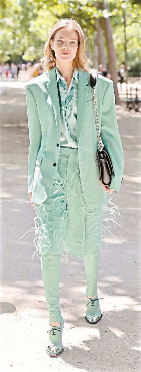 时髦精们不妨尝试下“薄荷曼波”,以轻盈绿色演绎穿搭的视觉舞蹈。
