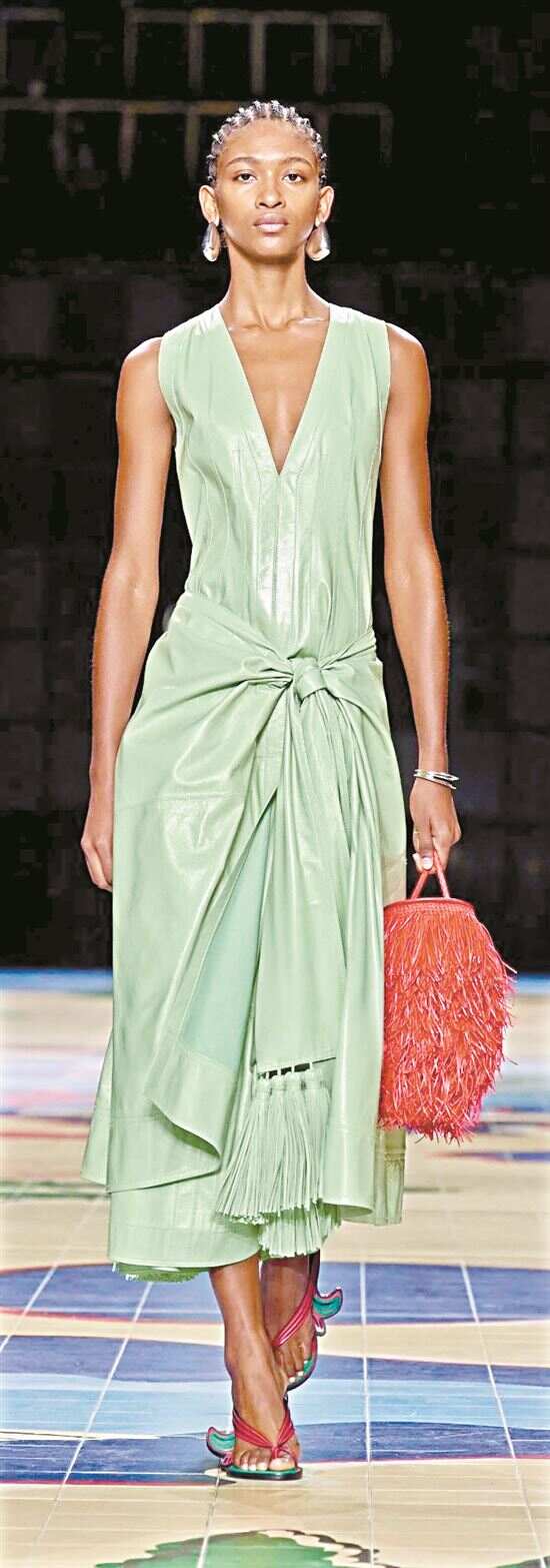 相比以往印象中单一明亮的薄荷绿色,薄荷曼波更多采用轻柔飘逸的面料如薄纱、丝绸等,营造出随风舞动的轮廓或结合特殊元素如流苏、珠片等,营造具有动态美的细节,让穿搭如一场与盎然春意和谐共舞的盛宴。