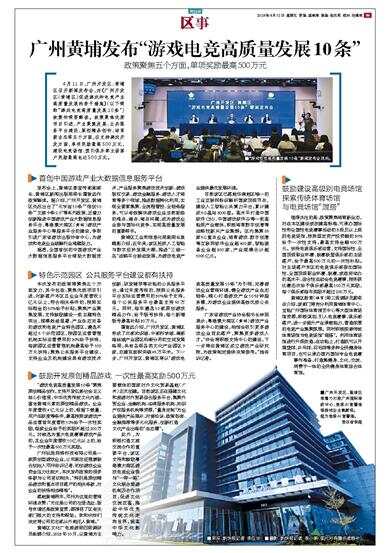 4月11日,广州开发区、黄埔区召开新闻发布会,对《广州开发区(黄埔区)促进游戏和电竞产业高质量发展的若干措施》(以下简称“游戏电竞高质量发展10条”)政策作简要解读。政策聚焦优质项目引进、产业聚集发展、公共服务平台建设、原创精品创作、培育新业态等五个方面,在支持游戏开发方面,单项奖励最高500万元,建设电竞场馆、吸引俱乐部主场落户奖励最高也达500万元。