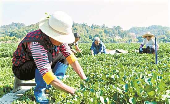 “西洋菜基地大量招人,我可以在家门口上班,在照顾家庭的同时,每个月收入还能稳定增收。”在基地务工村民李大姐说。示范基地为当地村民提供大量就业机会,让村民在家门口实现就业增收。目前该基地固定工人20名,临时工人80多人,村民每天务工收入150-300元不等,平均月工资5000多元。去年11月采摘旺季,部分村民月务工收入达到1.1万元。