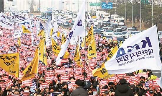 ■3月3日,韩国医生在首尔市汝矣岛参加集会抗议医学院扩招。新华社发