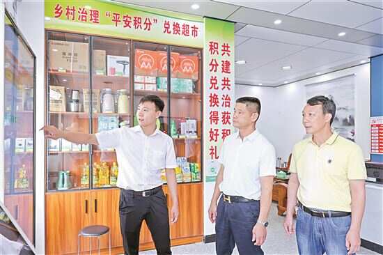 工作队在帮扶单位深圳市委政法委大力支持下,联合陆河县委政法委、新田镇政府,推动新村村建立乡村治理积分管理制度,由村干部、党员和村民代表共同组成积分监督管理委员会,结合实际制定符合村情的积分细则标准,借助“粤治美”村级事务管理平台,建立积分档案制度,推出“平安积分”兑换超市,引导激励党员群众积极参与乡村治理,“攒”下平安积分,“兑”出文明乡风,以“小积分”实现乡村治理“大提升”。