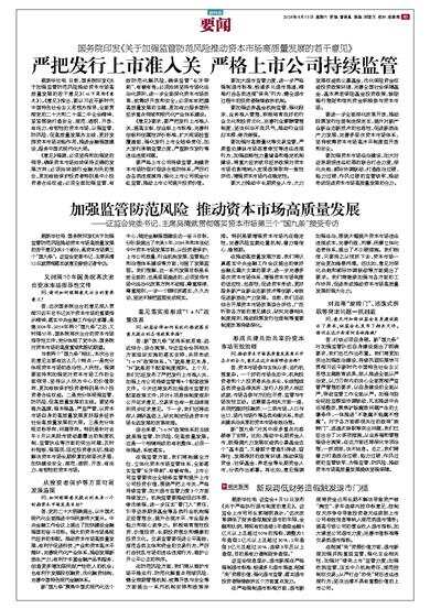 答:这次国务院出台的意见深入贯彻习近平总书记关于资本市场的重要指示精神,落实中央金融工作会议部署,是继2004年、2014年两个“国九条”之后,又时隔10年,国务院再次出台的资本市场指导性文件,充分体现了党中央、国务院对资本市场的高度重视和殷切期望。