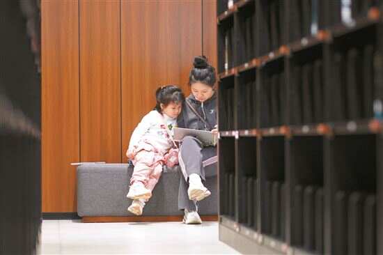 ■晚上七点多,许多下了班的市民来图书馆借书还书,有的还带小朋友来看书。
