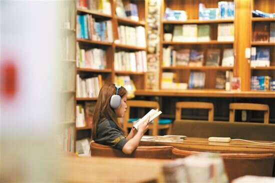■晚上十一点,天河区体育东路一家书店,一位女孩一边听音乐一边看书。