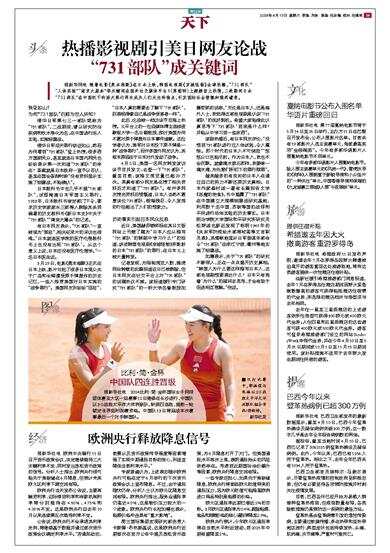 记者发现,为限制浏览人数,雅虎网站转载的此篇报道近日已被删除,但日本网友在社交平台上对“731部队”的话题热议不减。该报道援引专门研究“731部队”的一桥大学名誉教授加藤哲郎的话称,“无论是日本人,还是海外人士,我觉得这部电视剧是认识‘731部队’的良好契机。希望大家能借此认真思考下‘731部队’到底是什么样?并能从中学习到一些东西”。