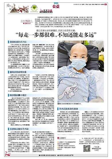 一家人好不容易到了中山大学附属肿瘤医院,然而当时没有床位,孩子情况却很糟糕,一步也挪动不了,他们只得又打120请求急救车送孩子去祈福医院暂时住下。“做了活检,医生怀疑是神经母细胞瘤。”陈小来说,在祈福医院住了八天,他们又回到中山大学附属肿瘤医院,并终于等到了一个床位。“护士长看到我们情况很特殊,让我们联系了广州爱心机构‘小家’,给我们安排免费的住处,帮了很大的忙。”陈小来回忆道,经过进一步的检查,雅埼被确诊患有神经母细胞瘤,并且因为肿瘤的压迫,她的腰部以下都已失去知觉。