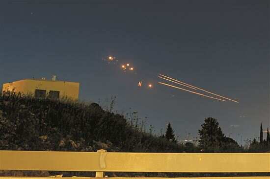 ■这张4月12日在以色列北部胡拉山谷拍摄的照片显示,以色列“铁穹”防空系统启动拦截从黎巴嫩发射的火箭弹。