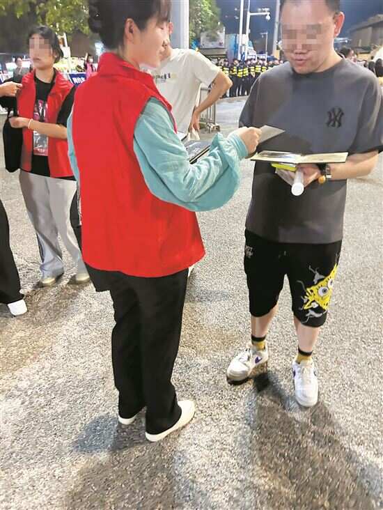 ■红马甲“志愿者”向散场歌迷推销假冒专辑。