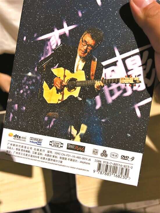 李小姐向记者提供的图片显示,红马甲“志愿者”售卖的演唱会专辑外壳上所印的发行单位为广州新时代影音公司,出品人为李强。记者查询企查查发现,该公司的法人的确是李强,2018年曾被法院限制高消费。记者还发现,该公司在2019年-2021年间,涉及多起知识产权和侵害录音录像制作权纠纷案。记者尝试识别专辑上的条形码,扫一扫之后的发现令人哭笑不得,条码显示的专辑名称为“中文舞曲基地(2CD)”,跟李宗盛没有丝毫关系。这张舞曲专辑还标明了线上价格,亚马逊平台售价20.72元、当当网售价43.4元、京东售价为47.7元。